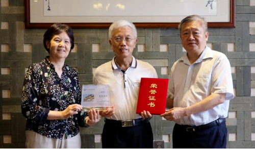 王庭槐校长(右)、周云书记(左)共同为黄继炎副教授(中)颁发荣誉证书和纪念品