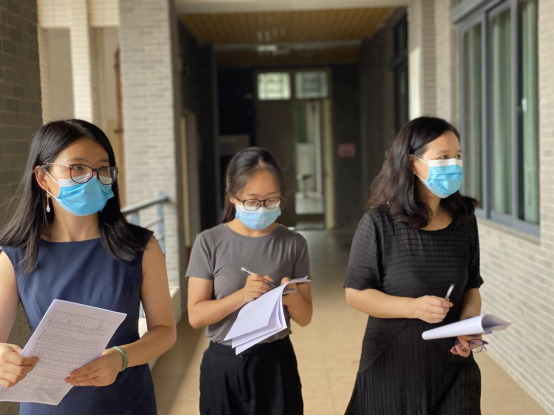 院长廖益清(右)、院长助理兼3044永利集团官网副主任何瑜(左)、教务秘书何燕(中)巡课