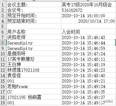 图:部分线上会议的参会人员名单