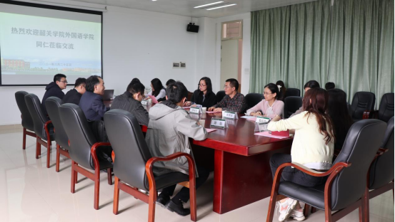 何瑜副院长就来访嘉宾提出的外研社英语大赛筹备情况及问题进行解答并分享办赛经验。