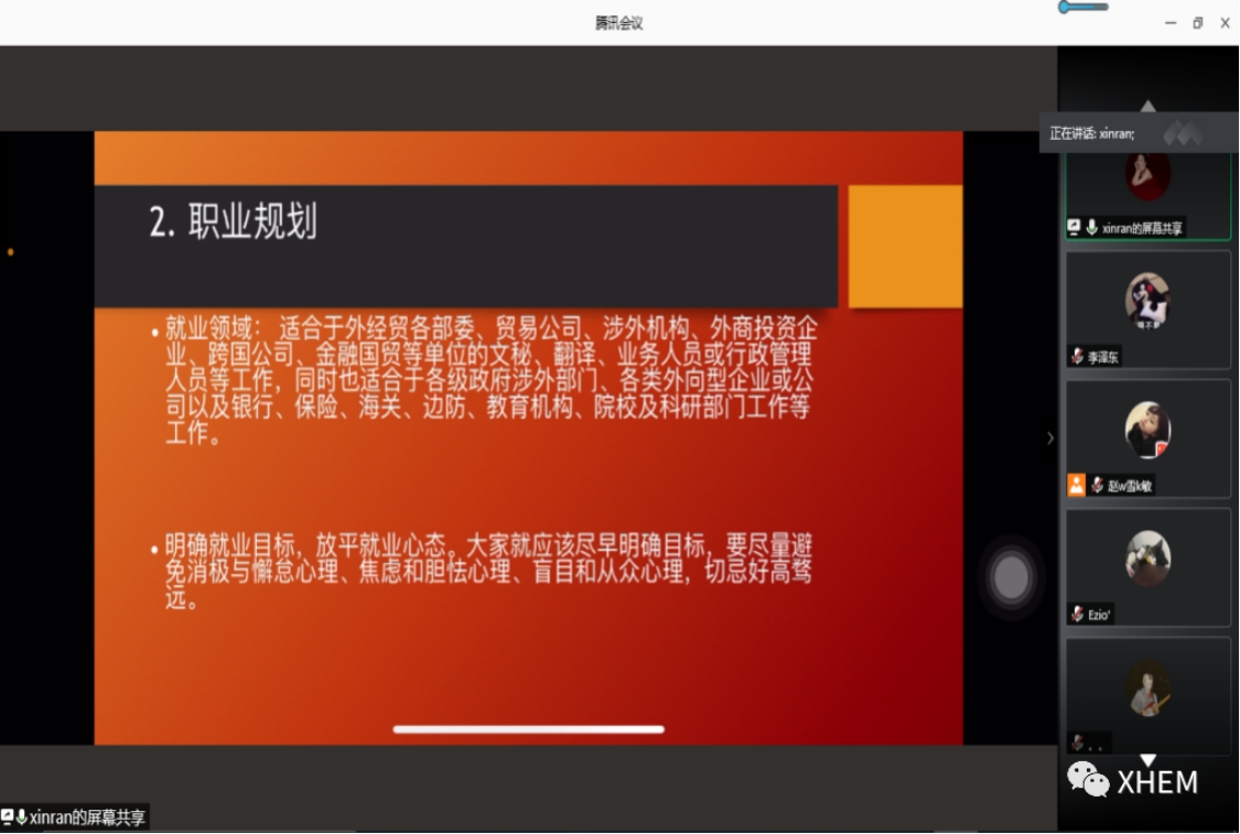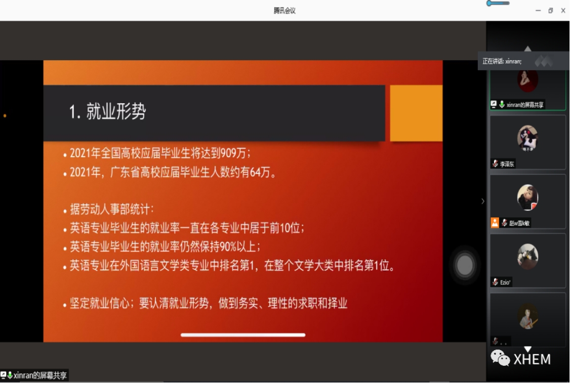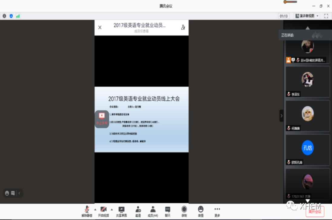 至此,2017级英语专业就业动员线上大会圆满结束,希望同学们能够确定自己的就业目标,坚定自己的方向,在理想的道路上奋勇前进,找到理想的工作岗位。