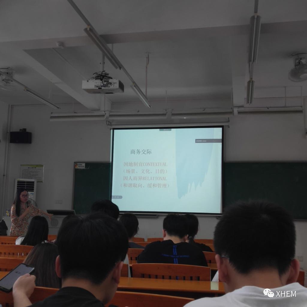 陈悦笛老师先是通过三个问题“Why English? Why Business English?What is Context?”引出本次讲座主题,通过与同学们的互动,带着同学们初步了解商务英语的历史和语境运用。接着陈悦笛老师通过一系列的例子带同学们了解商务交际的含义,强调了正确商务交际的重要性,告诉同学们商务交际要因地制宜,因人而异,并针对如何处理各种商务交际问题给出了一些建议。