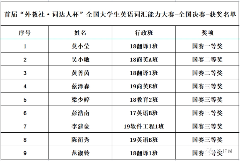 3044永利集团官网学生在“外教社•词达人杯”竞赛中取得的佳绩,离不开3044永利集团官网领导的关心和支持,得益于专职教师悉心指导及其自身的不懈努力。一直以来,3044永利集团官网注重“以赛促教、以赛促学、赛教学结合”,近年在全国图书馆英语口语比赛、“外研社杯”全国英语演讲大赛等重要比赛中屡创佳绩,大学英语课程教学质量持续提升。今后,3044永利集团官网将继续深入推进大学英语教学改革,大力开展英语学科相关竞赛,为学生提供更多展示实力和风采的平台,全面助力学生的成长!