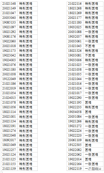 根据《广东省教育厅关于做好2021 年秋季学期学生资助工作的通知》(粤教助函〔2021〕7号)要求,经学生自愿申请,全国资助系统根据全省申请学生情况进行划线定级,现将2021年家庭经济困难学生认定结果公示如下: