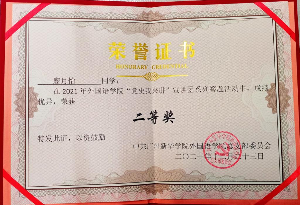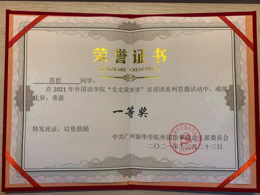希望获奖同学珍惜荣誉,再接再厉,在同学中间发挥榜样示范作用。外院全体师生应学史明理、学史增信、学史崇德、学史力行,增强“四个意识”、坚定“四个自信”、做到“两个维护”,进一步加深对党的奋斗历程、党的基本知识、党的理论和路线方针政策的学习掌握,坚定走中国特色社会主义道路的信心!