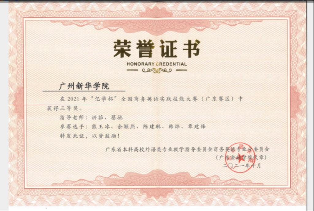 比赛荣誉证书(2021)