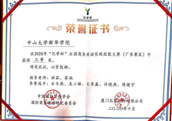 比赛荣誉证书(2020)