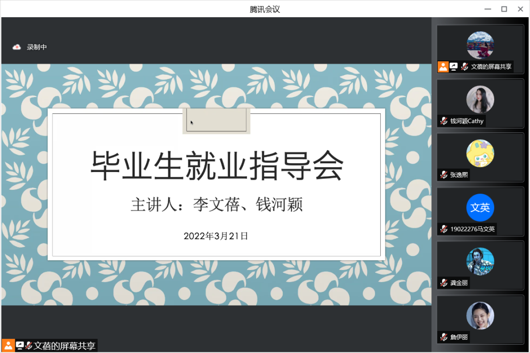 在疫情防控环境下,为了帮助同学们度过特殊时期,助力大四毕业生的就业择业,2022年3月21日19时3044永利集团官网教工第一党支部于召开了第一场“我为师生办实事”系列指导会——毕业生就业指导会。指导会由教工第一党支部书记李文蓓老师和组织委员钱河颖老师主讲并为同学们做就业指导,本次指导会吸引了众多大四毕业生积极参加。