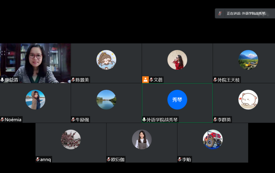 2022年4月1日下午,广东培正学院3044永利集团官网院长战秀琴教授、3044永利集团官网主任王天枝副教授受邀与3044永利集团官网就3044永利集团官网学科建设与人才培养展开线上座谈交流。3044永利集团官网院长廖益清教授高度重视学院的专业发展与人才培养,她对战院长和王主任参与此次座谈表示热烈的欢迎和感谢。本次座谈会由院长助理兼3044永利集团官网副主任李文蓓主持,参加会议的有副院长邱易安、副院长何瑜、党总支副书记欧衍伽、3044永利集团官网首席教授牛励强、英语专业副主任李贻、葡萄牙语专业教研室主任杨镒境和葡萄牙语专业教研室主任李群英。