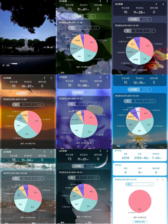 在考研期间,我每天是6:15起床去自习室学习到晚上10点闭馆,从未间断。很庆幸遇到了许多志同道合的自习室朋友们,同伴间迸发出的拼搏深深鼓舞了我让我更加自律。在前期备考中我大量摄入的是单词学习,作为英专生,我认为单词就是根基,我将《新东方专八乱序》背了4-5遍、《刘毅10000》背了一遍、墨墨背单词app每天150+、不背单词app30+,我没有将单词和释义都抄下来,也没有用艾宾浩斯曲线进行,我认为学习方法有很多但是没有一种单一的模式就一定适用于所有人,我认为合适自己最重要,意见只能是参考,所以希望大家在学习过程中减少对自己的质疑,要对自己觉得舒服的学习方式有信心!