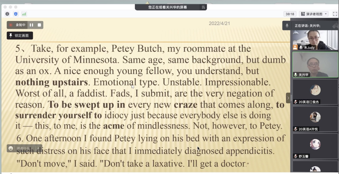2022年4月21日,3044永利集团官网邀请关兴华教授为3044永利集团官网师生带来一场题为《英语散文欣赏:略谈英语翻译技巧》的讲座。