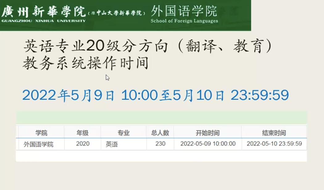 教务系统操作时间