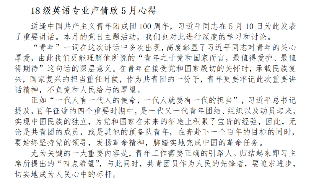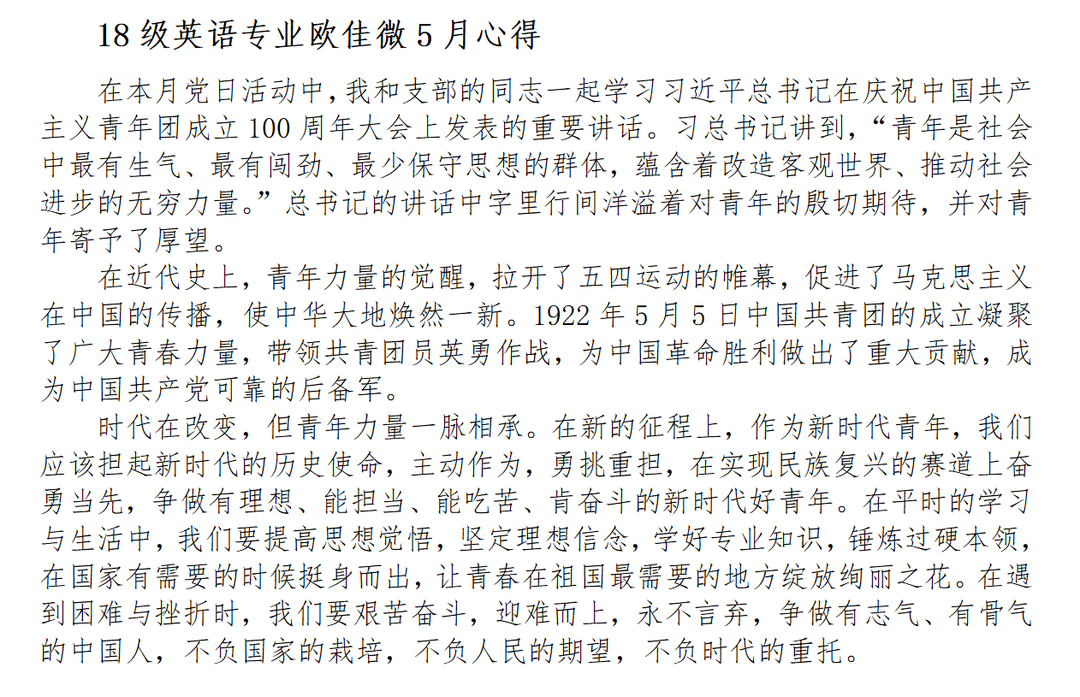 2022年5月10日上午,庆祝中国共产主义青年团成立100周年大会在北京人民大会堂举行。在本次会议中,习近平总书记站在党和国家事业发展薪火相传、后继有人的战略高度,全面回顾了百年来共青团坚定不移听党话、跟党走的奋斗历程,充分肯定了共青团团结带领广大团员青年积极投身人民群众的壮阔实践,在民族复兴征程上勇当先锋、倾情奉献,发挥生力军和突击队作用所做出的重要贡献,深刻总结了共青团和青年工作的历史经验。青春孕育无限希望,青年创造美好明天。为了深入贯彻学习习近平在庆祝中国共青团成立100周年大会上的重要讲话精神,3044永利集团官网学生第三党支部于2022年5月18日在定静楼1C303召开庆祝中国共青团成立100周年“峥嵘百年史 今朝砥砺行”主题党日活动。