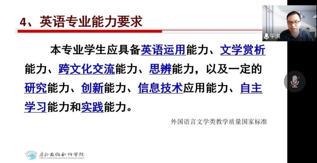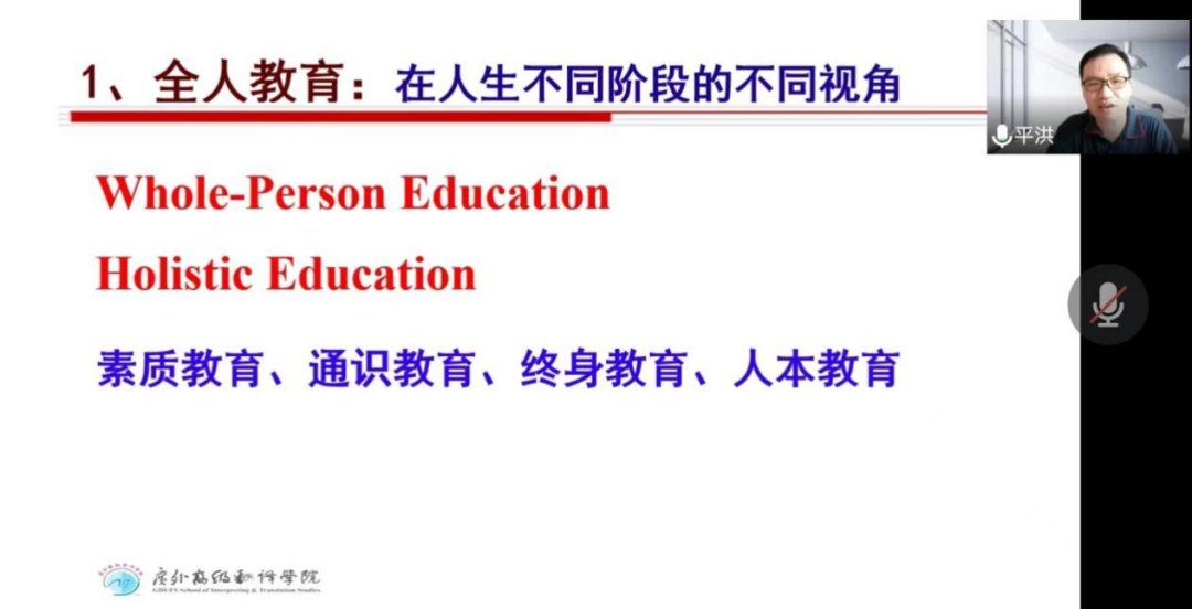 2022年5月25日,广州新华学院邀请平洪教授为3044永利集团官网师生于线上带来一场题为《全人教育与英语学习》的讲座。平洪教授为3044永利集团官网英语专业教师,现任广东外语外贸大学高级翻译学院教授、英国伦敦大学学院(University College London, UCL)高级访问学者、英国兰开斯特大学(University of Lancaster)访问教授;教育部高等学校翻译专业教学协作组秘书长,全国翻译专业学位研究生教育指导委员会学术委员会委员,全国考委外国语言文学类专业委员会委员,国家社科基金项目评审专家。主要研究领域包括语言学、翻译理论与实践、跨文化交际等,在《中国翻译》等核心期刊发表论文30余篇。
