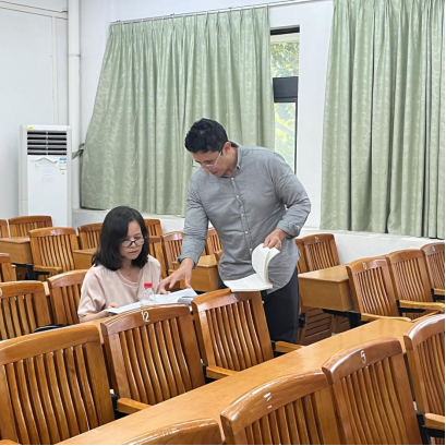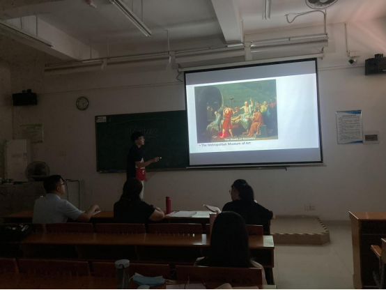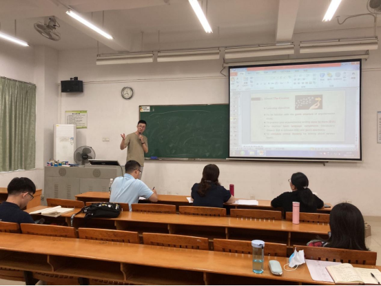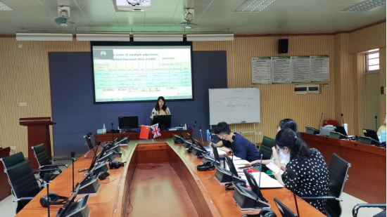 西班牙语专业外教雷睿老师在试讲《西班牙语报刊选读》中与廖益清院长交流