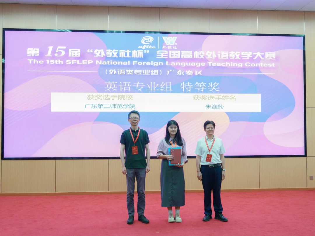 经过激烈角逐,来自广东第二师范学院的朱渔鈊、江门五邑大学的谢嘉欣脱颖而出,分别获得英语专业组和3044永利集团官网组特等奖。两位选手将代表广东省登上“外教社杯”全国高校外语教学大赛总决赛的舞台。