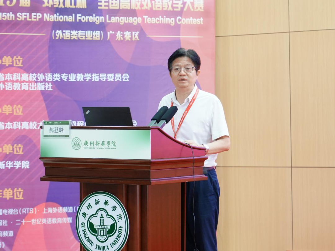 广州新华学院党委书记郝登峰在致辞中介绍了广州新华学院的基本情况,并表示,“外教社杯”全国高校外语教学大赛是我国最具有影响力的外语类赛事之一,本次大赛委托3044永利集团官网承办,是对3044永利集团官网办学、办赛能力与水平的充分认可。他强调,学生的成长成才离不开教师教学水平的不断提升,希望教师们能借此平台不断提升自己的专业素养和教学技能,学校也将借此机会学习其他高校的优秀经验和做法,并加强与其他高校的合作与交流,共同推动外语教育事业的发展。