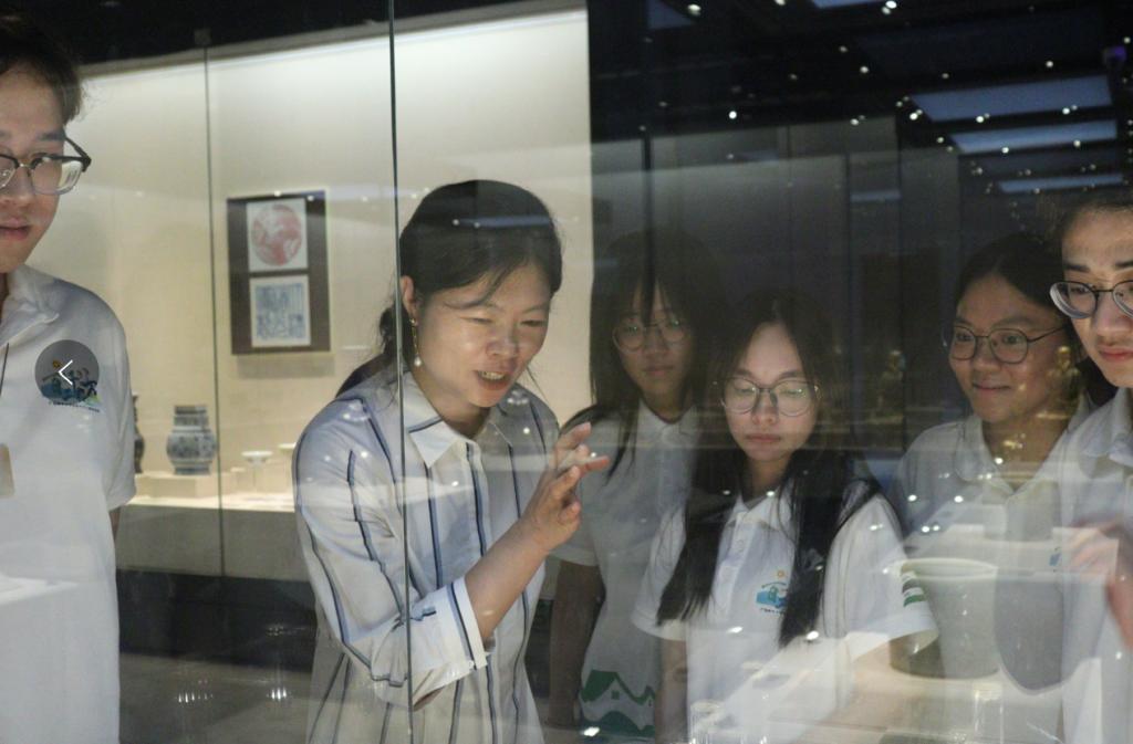 在短暂的休整后,队员们跟随着卢湘莹女士的脚步,一同踏入了汕头博物馆,来到了粤东珍藏文物精品展厅。在这幽静的展厅中,卢女士婉婉道来,我们冲破了时间的屏障,成为时空的旅者,穿梭在一件件文物之中,体验那遥远时空中的情感与智慧。在讲解最后,卢湘莹女士提醒我们,每一件文物不仅是静态的展览品,还是文化的载体、历史的见证、艺术的表达。她强调我们一定要通过观察和感受,才能更好地理解并珍惜那些时间雕刻出的痕迹,从中获得心灵的洗涤。