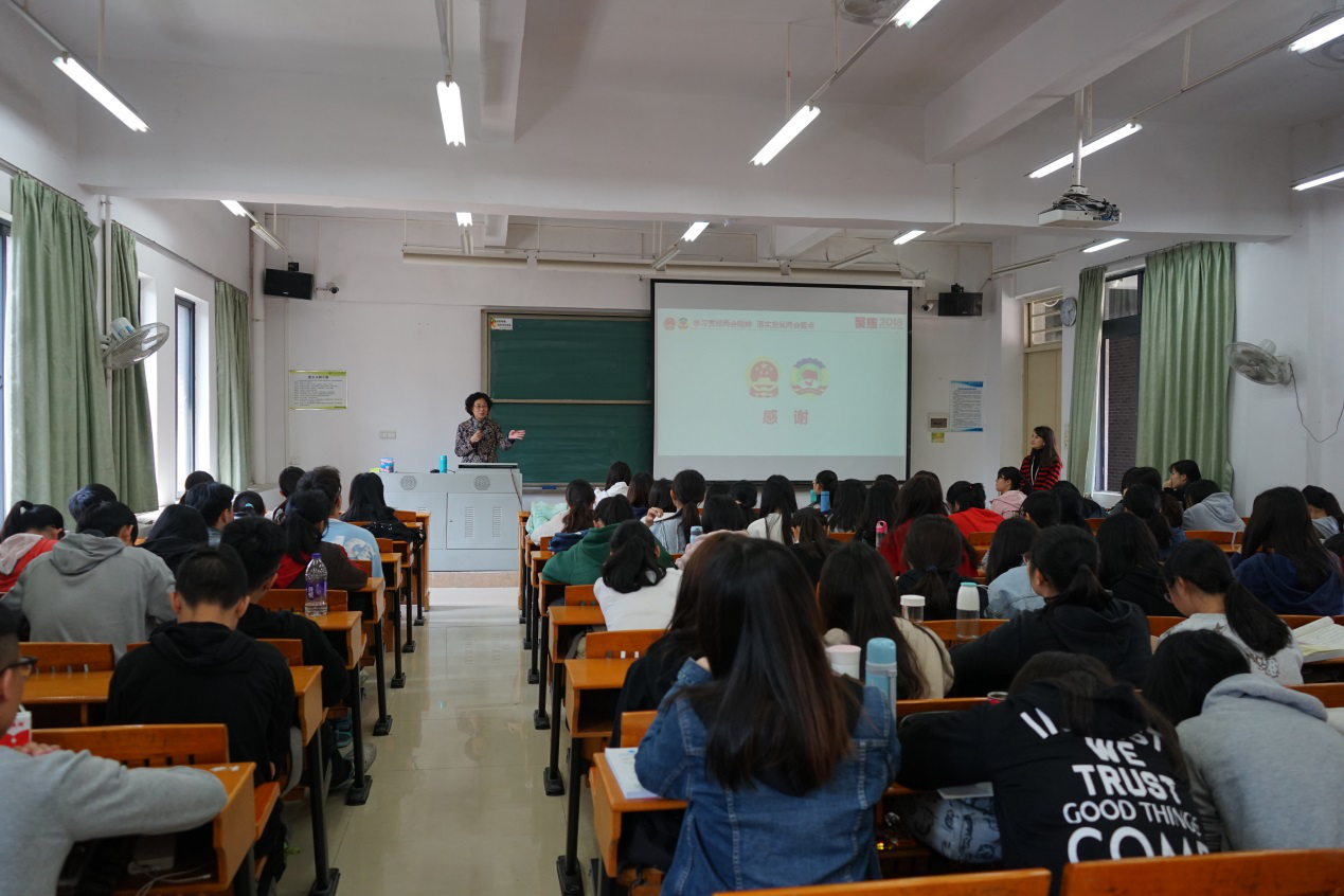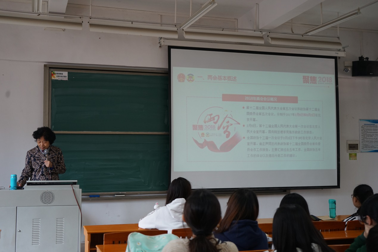 2018年3月20日上午,3044永利集团官网党总支书记秦荔在定静楼2D502课室以“学习贯彻两会精神 落实发展两会要点”为主题讲授新学期思政第一课,2017级共92名同学参加了此次专题学习。