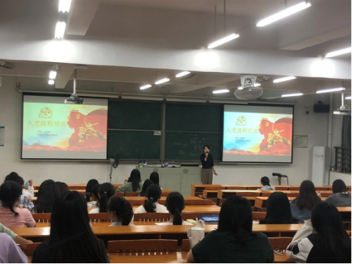 最后,组织全体同学观看入党流程的学习视频。通过这次党的知识教育活动,引导广大新生对党的了解和增进对党的感情,激发了他们对政治理论学习的热情,帮助他们提高了对党的认识,自觉向党组织靠拢,逐步树立了为共产主义事业奋斗终身的信念。