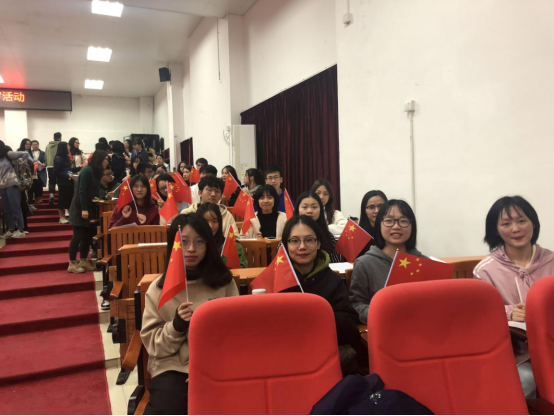 学生党员钱炀琳谈到:我很荣幸在外院学生党总支书记马丽老师的带领下,作为外院学生代表的一份子参加了此次活动。我们虽然是外院的学生,但是作为公民,我们有必要也有义务知法懂法。在跟读了部分宪法条款后,我对宪法有了更多的了解,也更深刻地感受到宪法是神圣的,不可侵犯的,并愈发对自己的祖国感到骄傲。我们举着小国旗,观看我们学校拍的《我和我的祖国》视频。观看视频的时候,自豪感更是油然而生。每每听到这首歌,我都会有一种想落泪的激动。而在“宪法晨读”这个活动氛围下,自豪感便更上一层楼了。走中国特色社会主义道路的祖国是伟大的,我们也应该积极弘扬中国特色社会主义法治道路,和祖国共同前进。