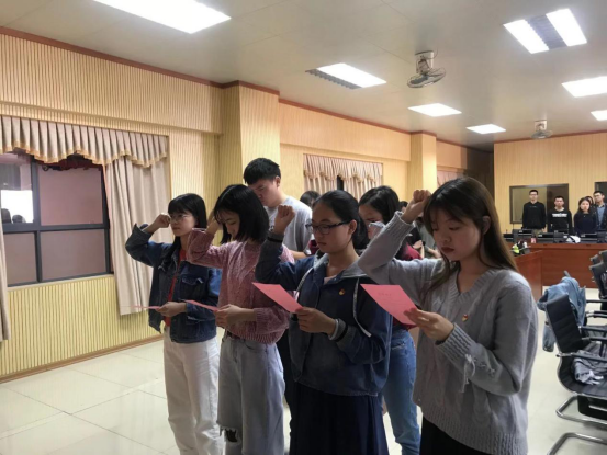会议第五项由何墨阳等6位同志进行宣誓仪式,仪式前唱国际歌。在表决决议形成后,转正的党员面对党旗,由何墨阳同志引领进行宣誓。