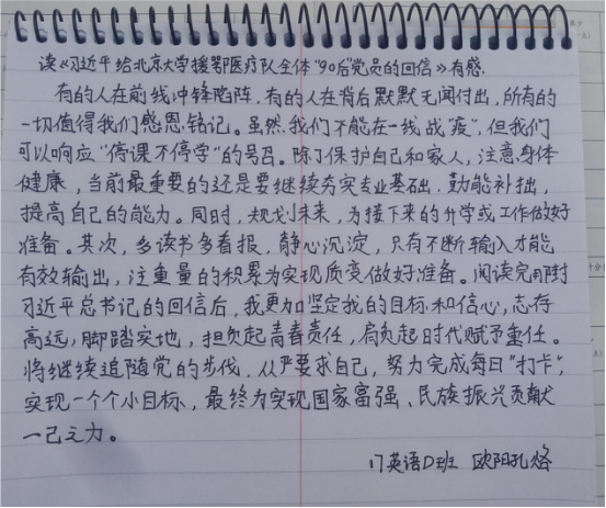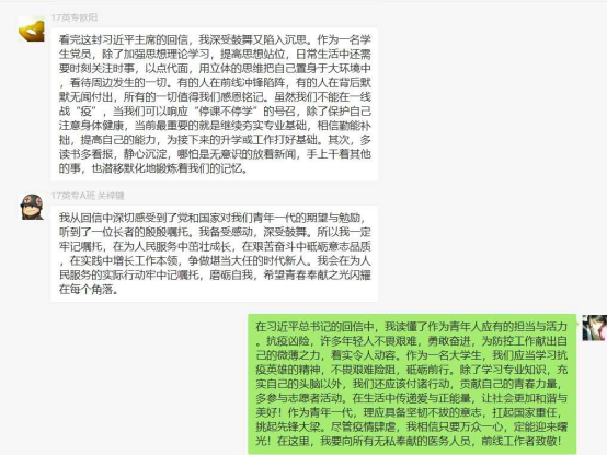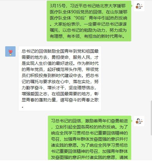 2020年4月29日,3044永利集团官网学生第一党支部组织开展了“研读学习总书记回信精神”的主题党日活动,各个党员同志们通过线上平台研读总书记的回信,学习回信里的精神,分享各自的心得与感悟。