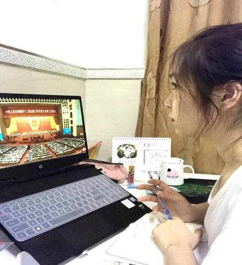 学生第二党支部的党员们在线上自行观看两会视频,学习两会精神。