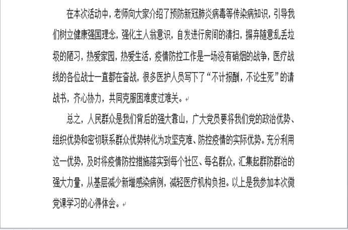 在这次党日活动中,各位党员同志通过观看超星学习通软件上的“爱国卫生教育专题辅导报告”微党课进行学习,并在学习过后撰写心得报告。通过认真学习,3044永利集团官网学生第一党支部的党员同志深刻地认识到爱国卫生运动在卫生防病工作中的作用。以下是部分党员同志的学习心得: