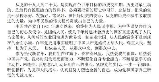 立足新起点,启航新征程,时代在呼唤,人民在期待。作为中国当代青年的我们,应时刻以革命前辈为榜样,立足本职、锐意进取、勇于担当作为,以更加饱满的热情,踔厉奋发,笃行不怠,勇毅前行。我们要加强学习,时刻进行自我赋能,既要注重理论学习,用理论武装头脑,还要将学到的知识运用于实践,坚持干中学、学中干。我们要坚定不移听党话、跟党走,怀抱梦想又脚踏实地,敢想敢为又善作善成,立志做有理想、敢担当、能吃苦、肯奋斗的新时代好青年,让青春在全面建设社会主义现代化国家的火热实践中绽放绚丽之花!