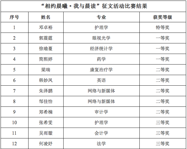 在3044永利集团官网党总支的大力支持下,“相约晨曦·我与晨读”征文大赛由3044永利集团官网、教工第三党支部和学生第三党支部联合举办。 自12月5日征稿以来,广州新华学院学子积极参与,每一篇来稿都承载着同学们对晨读的独特感悟与深情厚谊,字里行间洋溢着青春的气息和对知识的渴望。