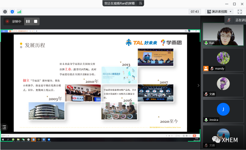 首先,学而思培优网课广州基地选培总负责人高冉主管向3044永利集团官网领导和教师介绍了学而思的企业发展历程。他表示,广州是学而思培优五大辅导教师基地之一,在2017年5月成立。高主管希望能够与3044永利集团官网建立长期稳定的合作关系,定期从外院的学生中挑选优秀的实习生和毕业生担任网课辅导教师。集团也会为同学们提供专业的系统化培训,包括线上的岗前培训以及线下岗后系列培训。