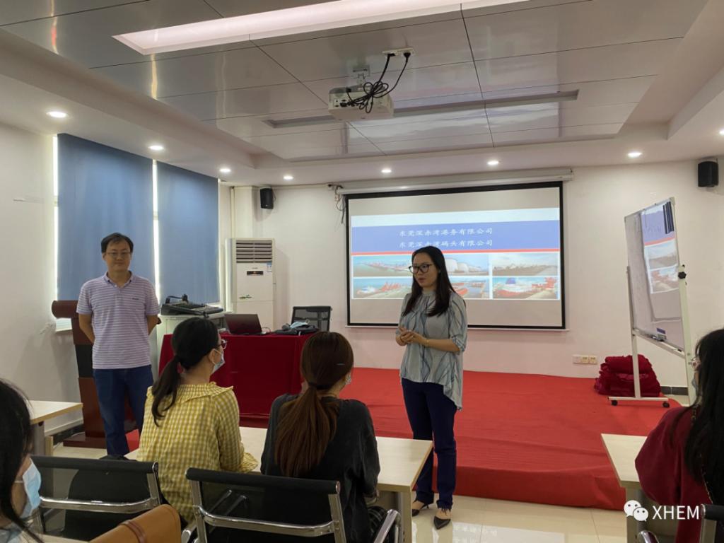 随后,师生们来到东莞深赤湾的培训室,赵同吉主任以“港口业务”为主题为同学们上了生动的一课,全面地展示了东莞深赤湾企业性质、地理优势、项目建设历程、业务运作流程等。同学们也在此过程中结合参观的场景,进一步了解了国际贸易中的散杂货运输、装卸的重要知识。讲授过程中,赵主任特别强调了东莞深赤湾企业文化中“敬业、专业和卓越”的麻涌精神。他深切地希望同学们可以扎实奋进,认真对待自己的学业,做好学习和工作的规划,更好地体现和发扬麻涌精神。最后,同学们结合所学的知识,积极向赵主任虚心请教和提问,期望在港口运作、物流和国贸知识方面学到更多且更实用的知识。