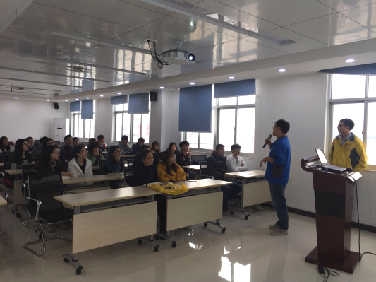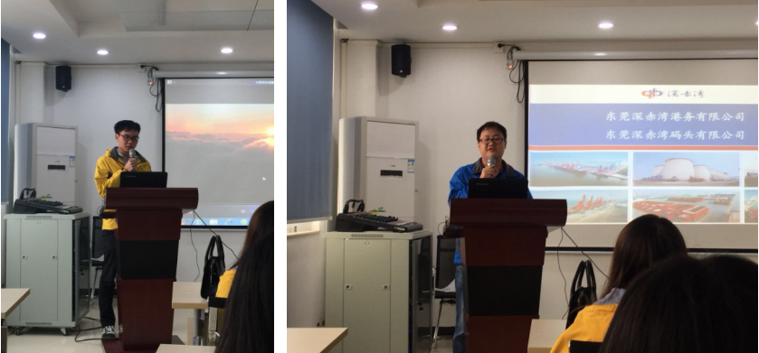 在东莞深赤湾码头有限公司人事行政科何子豪专员的带领下,大家来到该公司的会议室。他首先代表东莞深赤湾码头有限公司热烈欢迎了中山大学新华学院师生们的到来。来自操作部的赵同吉副主任,播放了东莞深赤湾码头有限公司的宣传片,向师生们介绍了东莞深赤湾短短六年的发展历程,让大家了解东莞深赤湾的企业性质、主营业务、经营业绩和企业文化。接着,赵主任通过码头单证操作的讲解,向师生们更加有效地讲解了码头业务和港口运作的特点。通过船舶配载图、卸载计划等单证的讲解,大家更加具体地了解了东莞深赤湾卸货效率、以客户和货物为服务中心的高度服务意识。赵主任生动而富有经验的解释,激发了同学们极大的热情和兴趣。针对粮食和化肥的散杂货特点,东莞深赤湾码头公司积极应对,努力改善自身条件,调动员工积极性,在与天气争分秒、如何提高卸货效率兼顾货物良好状态的工作上精益求精。例如针对复合肥散杂货必须立刻灌包的特点,通过规划建立缓冲仓,提高卸货速度,减少客户额外支出和加强码头吞吐能力上做足功夫。师生们在面对专业人士时,也将平时较为抽象的课本知识疑难点及时提出。抽象的理论知识,由经验丰富的赵主任娓娓道来,顿时容易理解了很多。赵经理一一解答的同时,也将一些实际的万吨级货轮卸货特点,介绍给大家,师生们收益颇丰。