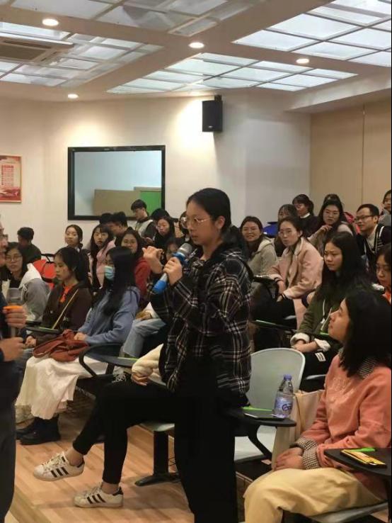 紧随企业宣讲之后的是提问环节。在场听众积极提问,有的同学“刨根问底”地询问“创业合伙人制”的具体情况,有的同学“单刀直入”地咨询企业招聘的要求,以及学历是否会对录取结果造成影响,等等。刘付贤总监都一一进行了解答。