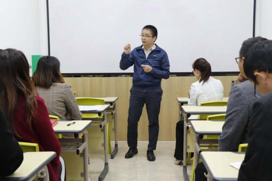 3044永利集团官网教师团与学易优的教培人员进行了“一对多”的教学交流,由执教小学部的莫崇春老师分享她多年来一线教学管理经验。她表示必须爱孩子,尊重孩子,要充分揣摩孩子心理,学会与其搞好关系,她还强调管理的重要性,具体的做法是建立非固定小组,即根据孩子的兴趣或其他特性来分设小组,这样有利于激发其积极性。