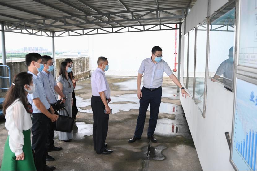 唐波助理总经理(左)在观景平台为王庭槐校长(右)介绍东莞深赤湾