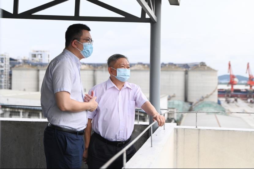 抵达东莞深赤湾后,唐波助理总经理邀请王校长前往观景平台参观东莞深赤湾全貌,并为王校长详细讲解东莞深赤湾码头的发展建设、相关业务和港口运作。东莞深赤湾是位于国家一类开放口岸水域虎门港麻涌港区,是国资委管控的招商局集团(中央直管国有骨干企业)交通港口板块深圳赤湾港航股份有限公司的子公司。东莞深赤湾被列为东莞市党政领导重点督导项目和省重点项目,现为国家进口粮食指定口岸,珠三角区域粮饲和化肥业务量最大的散杂或码头,中国质量诚信企业。