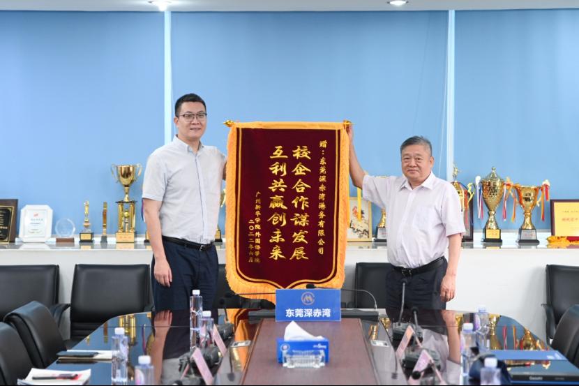 访企拓岗深化校企合作 王庭槐校长走访东莞深赤湾共商产学研教发展,授予锦旗挂牌实习基地