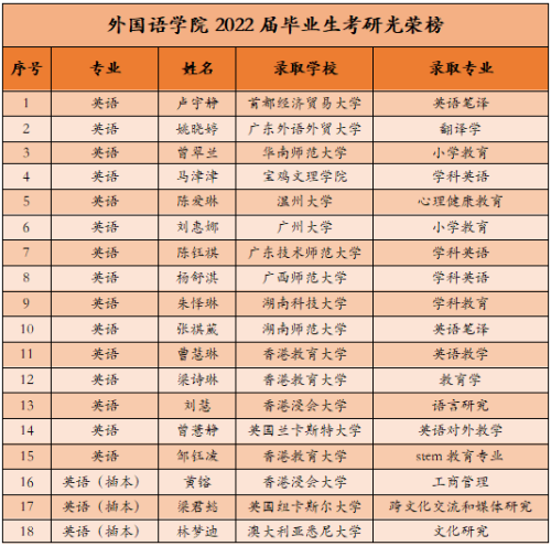 同时,3044永利集团官网持续做好国内外考研升学的数据统计备案,发掘典型案例,通过“考研光荣榜”鼓励更多的外语学子考研升学深造。此外,学院每年都会组织考研“上岸”学生分享考研经验,并邀请优秀毕业生召开“学子讲坛”,进行考博、考编、考公及应聘知名外企、事业单位的经验分享。
