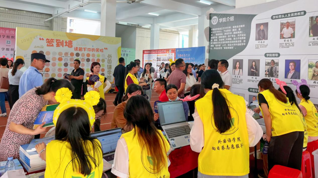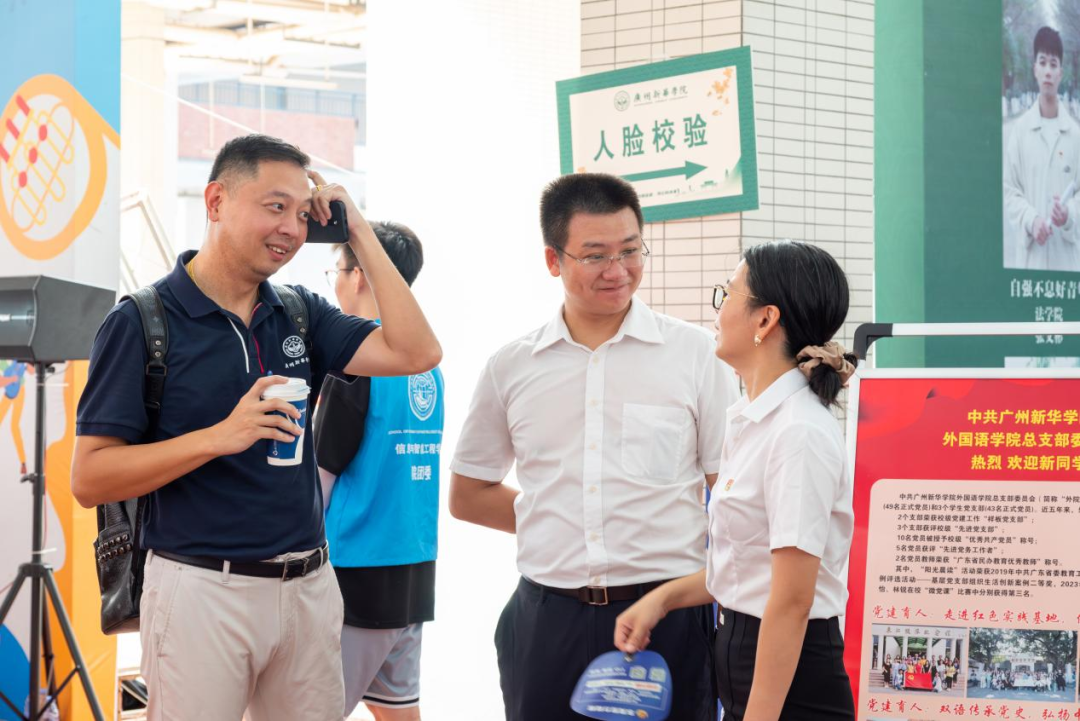 在迎新现场,校长王庭槐亲切地询问新生们选择了哪些专业。当得知有学生选择了葡萄牙语专业时,王校长表示赞赏,笑着说道:“眼光很好,葡语未来大有可为!”这一番话让新生倍感鼓舞,气氛轻松愉快。随后,校领导与新生及其家长亲切合影。