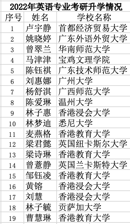 英专学生积极进取,奋发攻读国(境)内外研究生, 2020年至今有70名学生成功升学深造,人数比例位于全校前列。毕业生就业率高,2021 年和 2022 年荣获校级优秀就业单位。