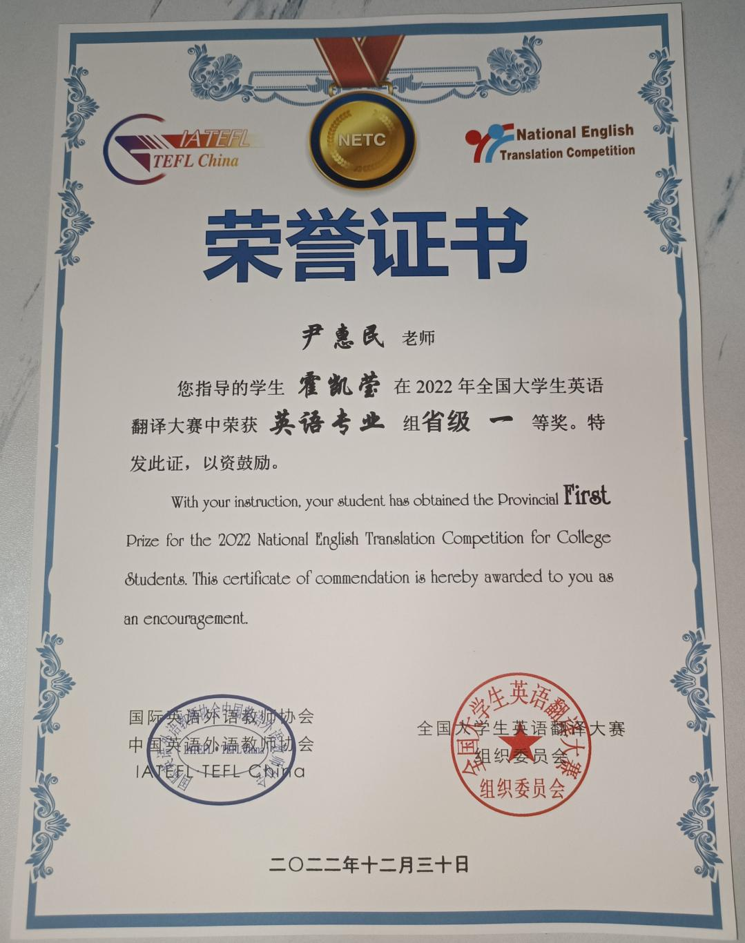 英专学子卢玉娣荣获2021首届CATIC杯全国翻译大赛二等奖