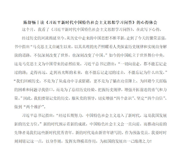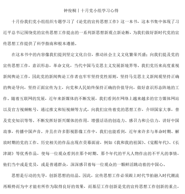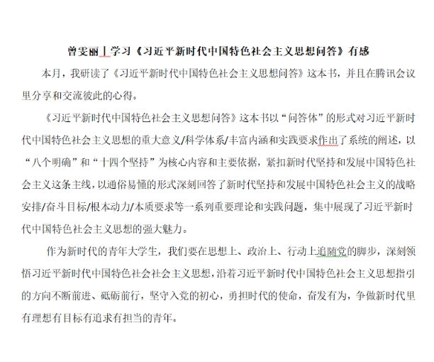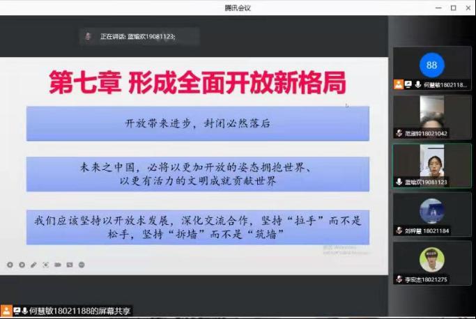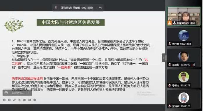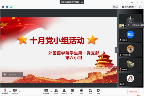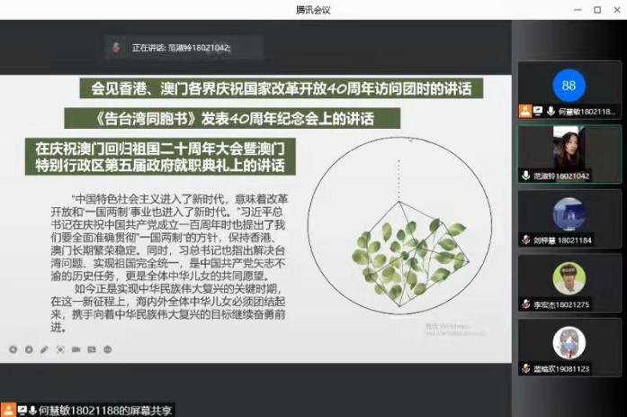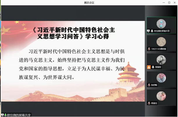 为了更好响应党的号召,践行党的宗旨而不懈奋斗,3044永利集团官网学生第一党支部开展了十月党小组学习分享会会,支部党员在线上互相分享学习心得,一起通党史、晓党情,从党史中汲取伟大精神力量,坚定理想信念。