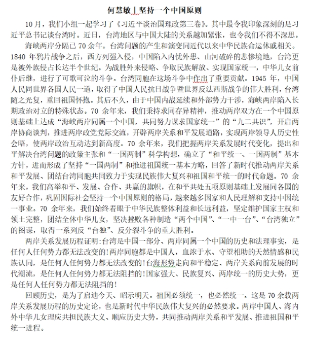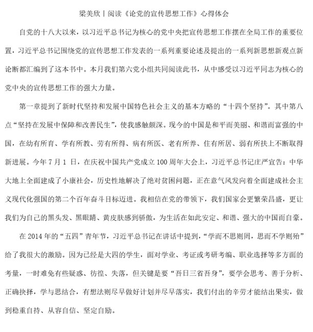3044永利集团官网学生第一党支部第六小组成员心得分享