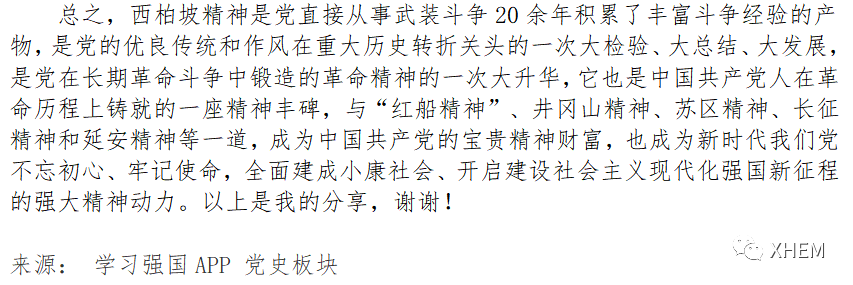 相信通过以上两则党史内容的学习,同学们对我党的光辉历程有了进一步认识。风雨无阻向前进。我们党之所以历经百年而风华正茂、饱经磨难而生生不息,就是凭着那么一股革命加拼命的强大精神。筚路蓝缕,玉汝于成,更加美好的明天仍需发扬艰苦奋斗精神来创造。